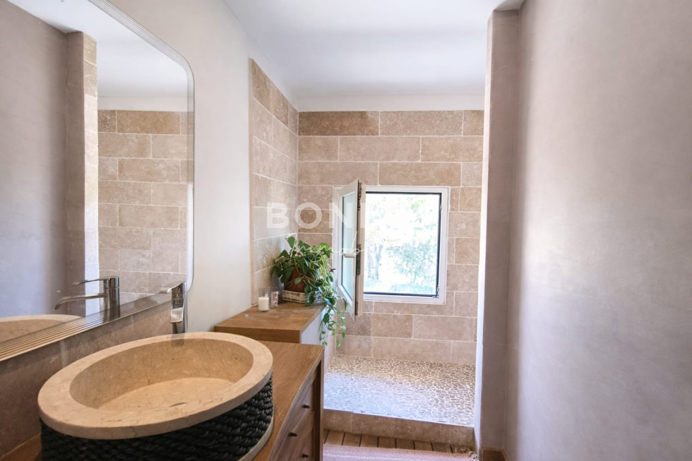 Au cœur de La Bastide-des-Jourdans, à proximité immédiate des commerces, et idéalement située à 20 minutes de Pertuis et Manosque, ainsi qu’à 40 minutes de Aix-en-Provence, cette maison offre un cadre de vie à la fois pratique et agréable. Par un hall qui mène naturellement vers une belle pièce de vie traversante, baignée de lumière grâce à ses ouvertures traversantes. Le salon et la salle à manger s’organisent autour d’une cheminée en pierre, apportant beaucoup de cachet. Une grande baie fixe vient sublimer l'ensemble en offrant une vue sur le chateau du village, comme un véritable tableau naturel qui évolue au fil des saisons. La cuisine ouverte prolonge cet ensemble pour offrir un espace convivial et fonctionnel de 62 m², idéal pour la vie de tous les jours comme pour recevoir. Une chambre en rez-de-chaussée, avec accès direct à la terrasse, permet de profiter d’un confort de plain-pied, complétée par une salle d’eau et un WC indépendant sur ce même niveau. Un escalier en bois mène à l’étage où l’on découvre deux grandes chambres avec vue sur le jardin et la piscine, ainsi qu’une salle d’eau et des sanitaires indépendants. À l’extérieur, la terrasse s’ouvre sur un jardin arboré de 588m², agréable et facile à vivre. La piscine 6x4, chauffée, sera prochainement remise en service et offrira une eau aux reflets doux grâce à son liner gris clair. En fond de jardin, un cabanon complète l’ensemble et peut facilement être aménagé selon les besoins (salon d'hiver, chambre d'amis...) En sous-sol, un vaste garage de 94 m² permet de stationner plusieurs véhicules et communique directement avec la maison. L’ensemble bénéficie de prestations de confort avec chauffage au sol en rez-de-chaussée et climatisation. La maison est fonctionnelle et peut être habitée sans travaux. Une maison lumineuse, bien pensée, où l’on se projette immédiatement… comme une évidence. Pour tout renseignements ou visite, contacter Fanny BESTAGNO - BONDIL IMMOBILIER