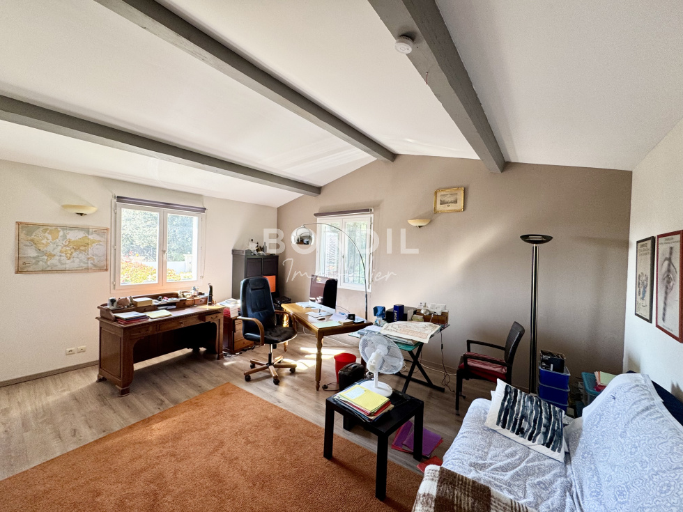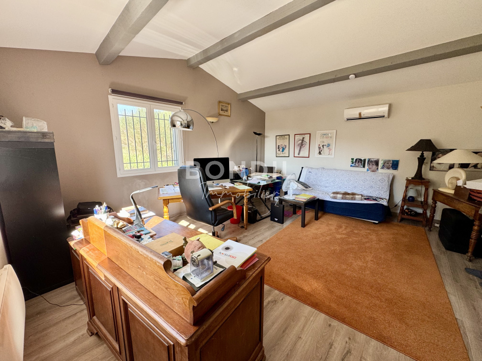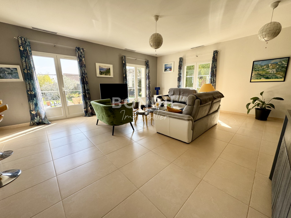 Située au cœur du Parc Naturel Régional du Luberon, cette maison individuelle construite en 2008 offre un cadre de vie calme et résidentiel, idéal pour une famille. Elle dispose d’une surface habitable de 159 m² sur un terrain clos et arboré de 1000 m², avec une piscine de 8 x 5 mètres et une vue dégagée sur le Luberon au nord. La maison se compose d’un salon-séjour lumineux de 37 m², d’une salle à manger de 14 m² et d’une cuisine indépendante de 16 m². Elle comprend trois chambres, dont une suite parentale avec dressing et salle de bains, ainsi que deux chambres supplémentaires avec placards et leurs propres salles d’eau. Un bureau spacieux de 25 m² à l’étage offre un espace idéal pour le télétravail ou les loisirs. Il pourra également etre aménagé en chambre. La maison dispose également d’une buanderie et d’un grand garage de 28 m². À l’extérieur, le terrain arboré offre intimité et espace pour profiter du soleil, tandis que la piscine enterrée invite à la détente en famille ou entre amis. L’environnement résidentiel est très calme et recherché, offrant un cadre de vie agréable au pied du Luberon. Cette maison conjugue confort moderne, volumes généreux et tranquillité, et est prête à accueillir ses futurs propriétaires sans travaux à prévoir. Contact Hugo BONDIL 06 43 46 80 59